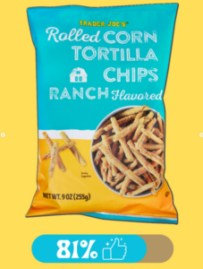 - Trader Joe’s Rolled Corn Tortilla Chips Ranch Flavored Rated: 81%π