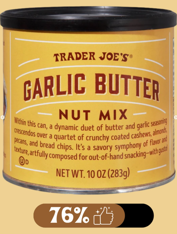 76% of those who voted rate Trader Joeβs Garlic Butter Nut Mix a good buy! Will you be adding these to your Trader Joeβs List?
